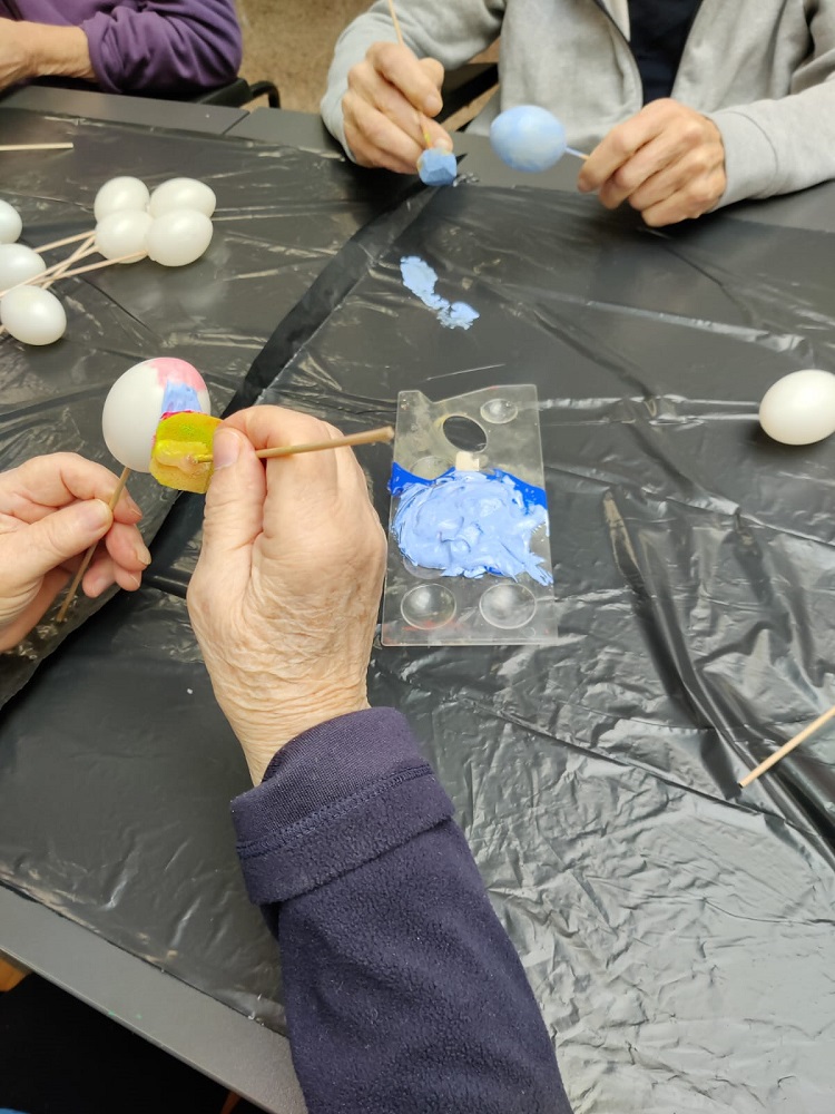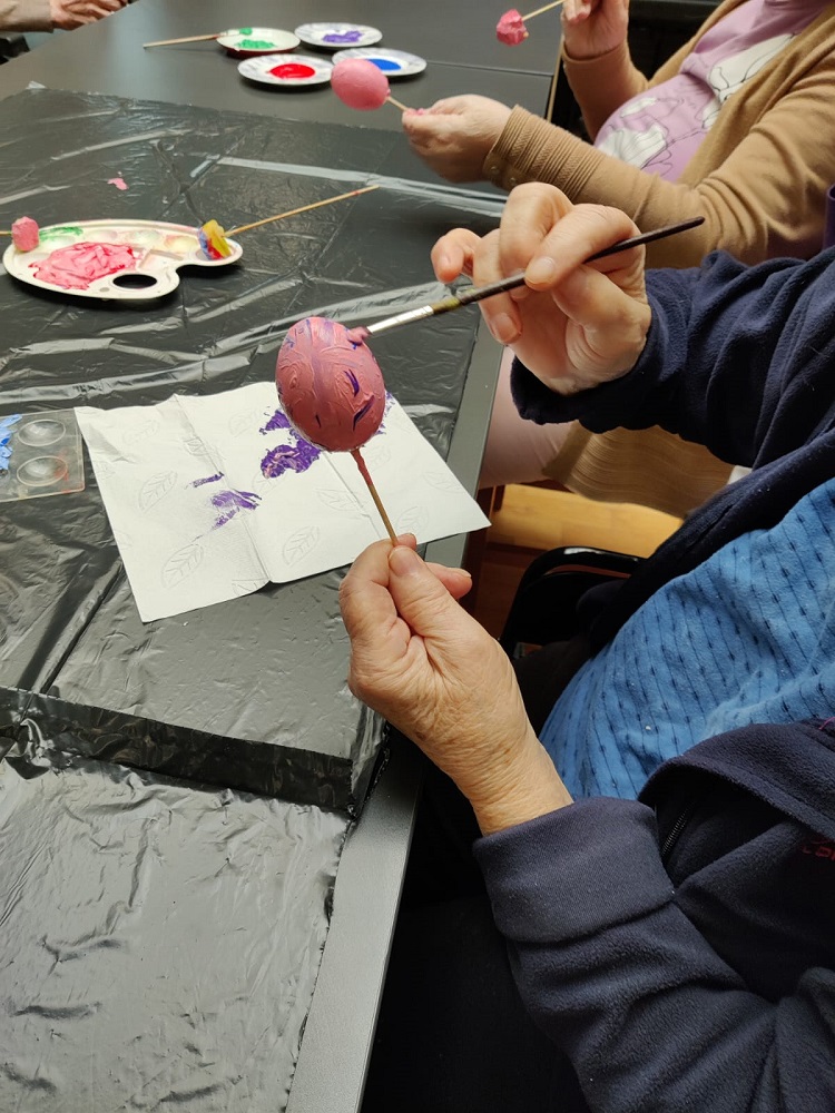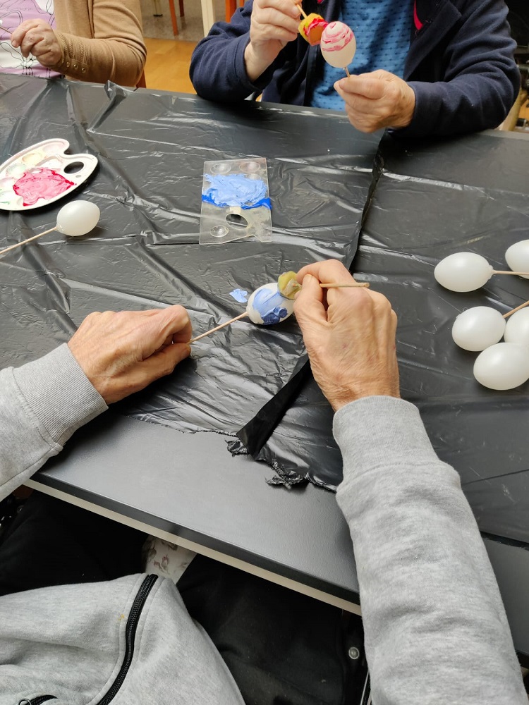 Korisnici SeneCura doma za starije Bjelovar zasukali su rukave i marljivo bojali pisanice. Sudjelovali su u kreativnoj radionici u sklopu koje smo bojali šarene pisanice na štapiću. Pisanice ćemo složiti u buketiće i staviti u vaze. Šarenim pisanicama ćemo ukrasiti stolove u restoranu za blagovanje. Spremamo se za Uskrs.