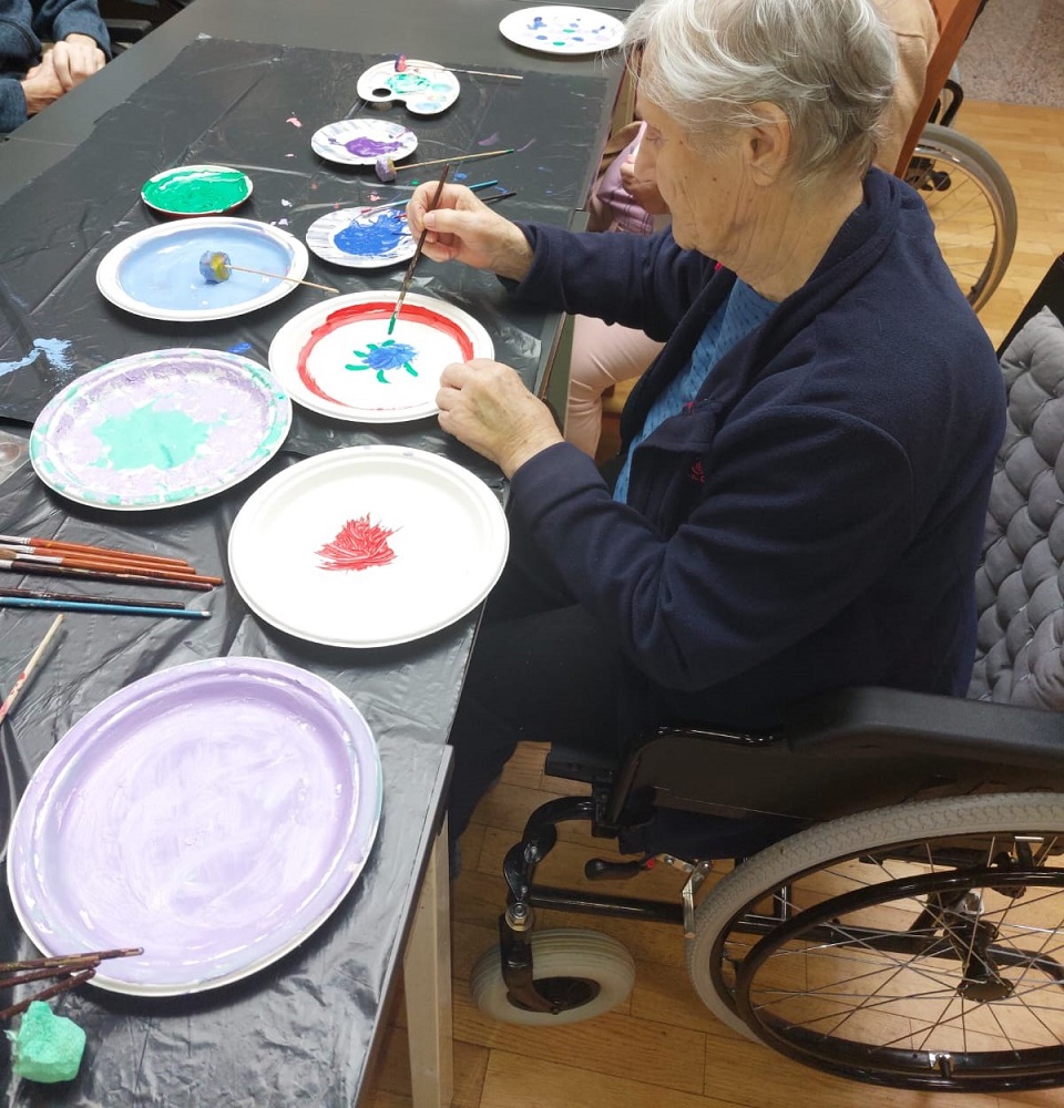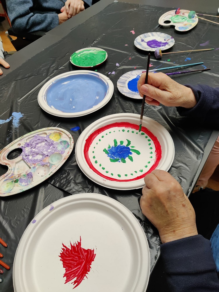 Korisnici SeneCura doma za starije Bjelovar sudjelovali su u kreativnoj radionici. Na radionici su izrađivali ukrasne cvjetove od papirnatih tanjura. Spremno su se prihvatili kista i boje. Vrijedno su zaprljali ruke temperama te kreativno i raznoliko bojili ukrase na tanjurima. Tanjure smo složili u cvjetove. Ukrasnim cvjetovima smo uredili zid u boravku u našem domu.