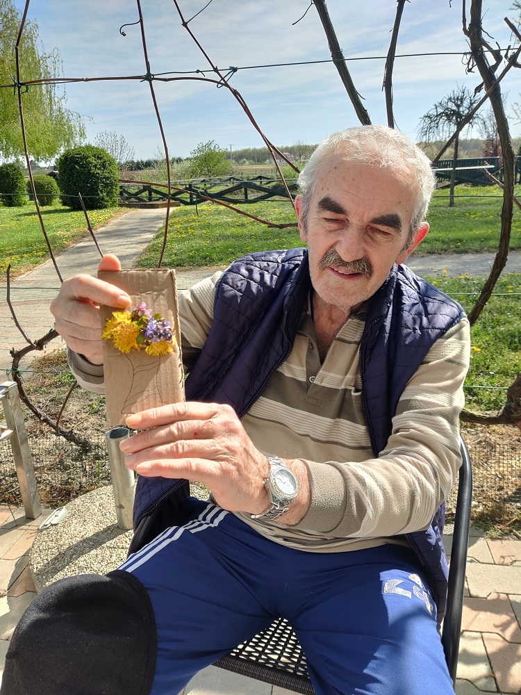 Korisnici SeneCura doma za starije Bjelovar iskoristili su lijepo proljetno vrijeme te su za vrijeme terapijske šetnje brali cvijeće od kojeg smo napravili zanimljive bukete. Koristili smo poljsko cvijeće i karton. Na kartonu smo nacrtali vaze i napravili rupice kroz koje smo provukli cvjetiće, svježe ubrano iz našeg dvorišta.