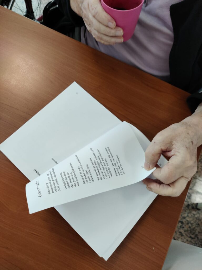 Volite li čitati poeziju? Korisnici SeneCura doma za starije Bjelovar rado čitaju poeziju. I ovog puta smo iskoristili slobodno vrijeme te pročitali nekoliko pjesama. Nakon čitanja zajednički smo diskutirali o pjesmama koje smo pročitali. O tome kakav je umjetnički dojam na nas ostavila koja pjesma.