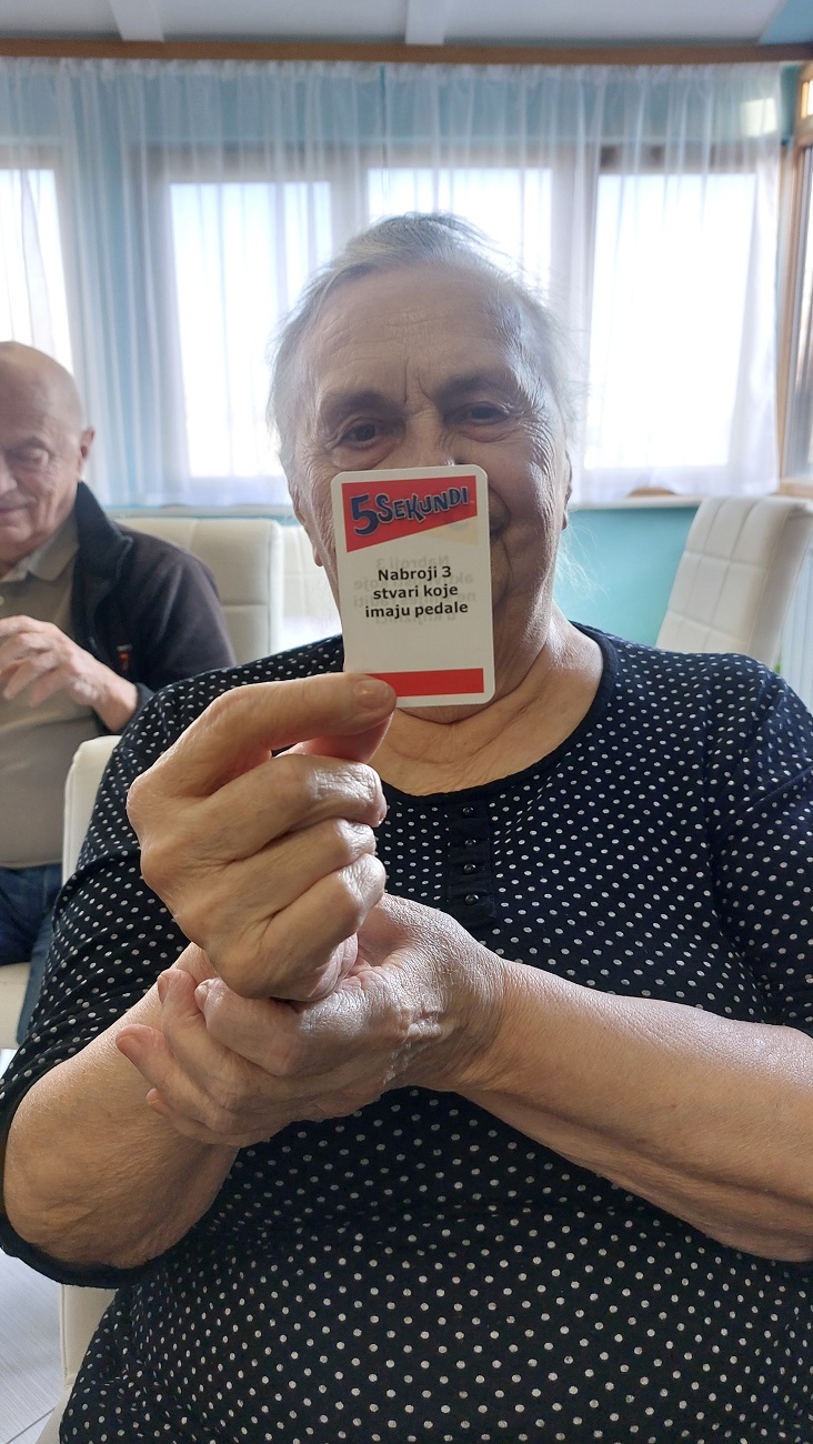 Korisnici SeneCura doma za starije Trešnjevka vole se igrati društvenih igara. Ovaj puta su zaigrali igru 5 sekundi. 5 sekundi je brza kviz igra u kojoj igrači moraju u roku od 5 sekundi dati tri točna odgovora na postavljeno pitanje s kartice. Ovakve društvene igre potiču naše korisnike na stimulaciju kognitivnih funkcija, na artikuliranje brzih odgovora, na vježbanje sivih moždanih vijuga, a pri tome su i zabavni.