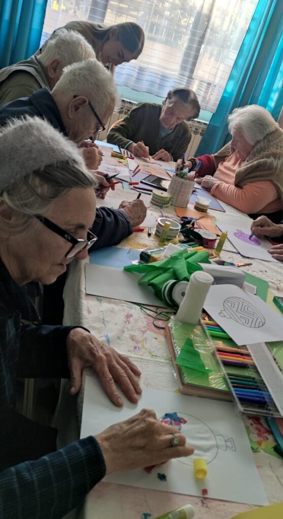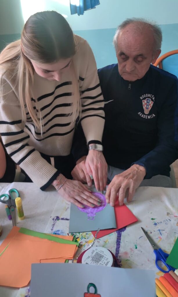 Volonterka projekta Sjeti me se izrađivala je s korisnicima SeneCura doma za starije Sesvete prigodne blagdanske i božićne čestitke. Korisnici su u okviru ove kreativno-likovne radionice radili čestitke od papira, bojeći kuglice, koje su lijepili na prigodnom šarenom, bladganskom papiru.